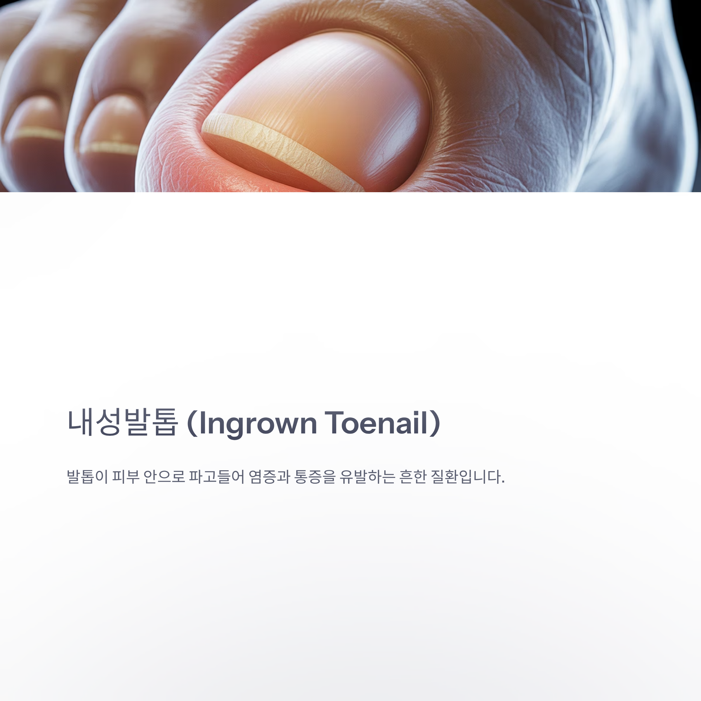 발톱이 피부 안으로 파고 들어가 염증과 통증을 유발합니다.