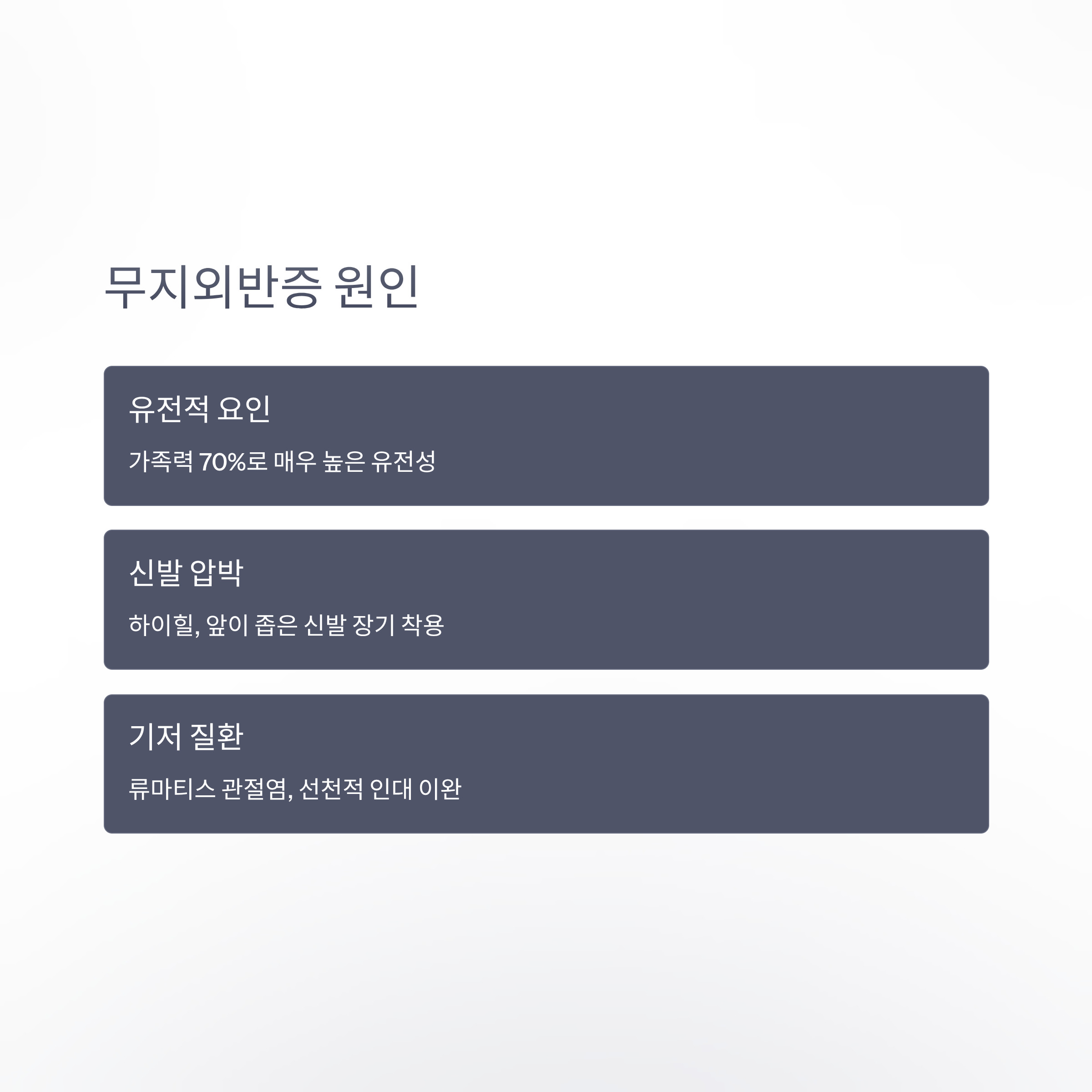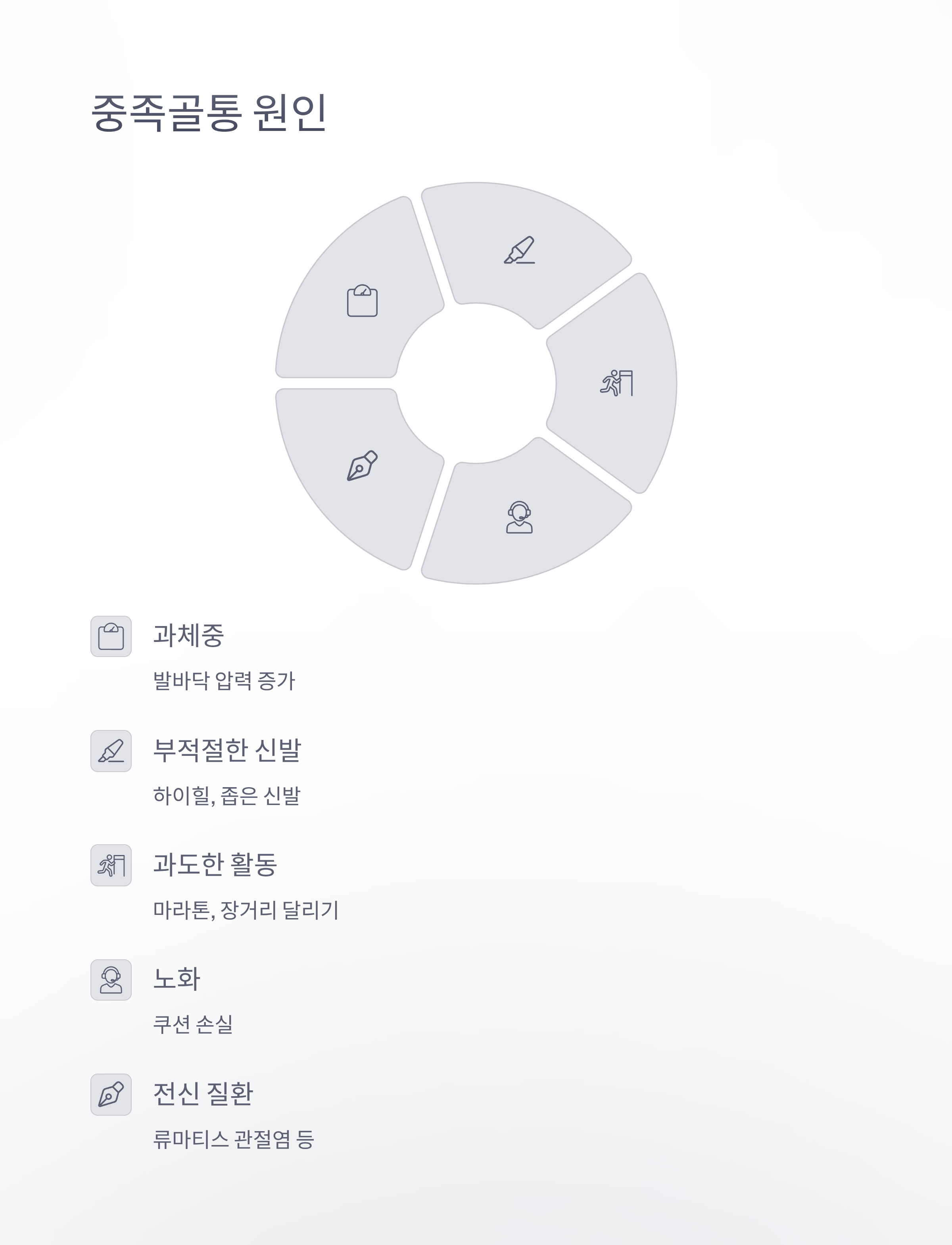 - 과도한 신발 압박(하이힐, 앞이 좁은 신발)