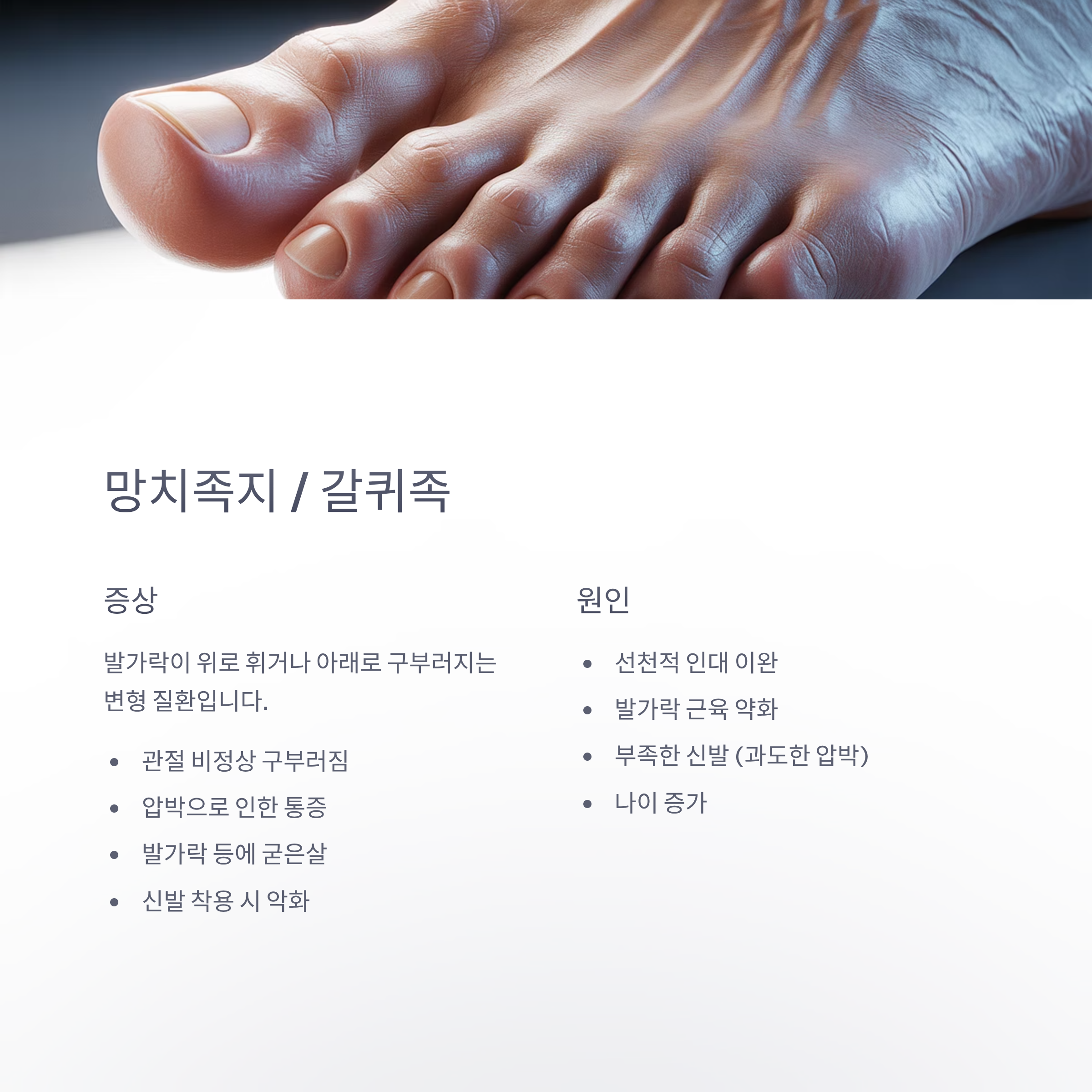 발가락이 위로 휘거나 아래로 구부러지는 변형 질환입니다.