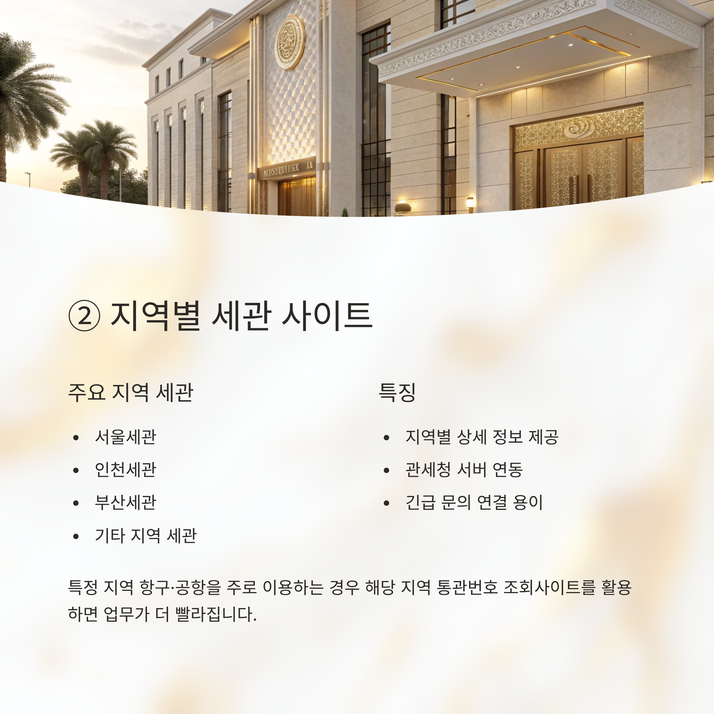 서울세관, 인천세관, 부산세관 등 지역별 세관에서도 별도 조회 메뉴를 제공합니다.