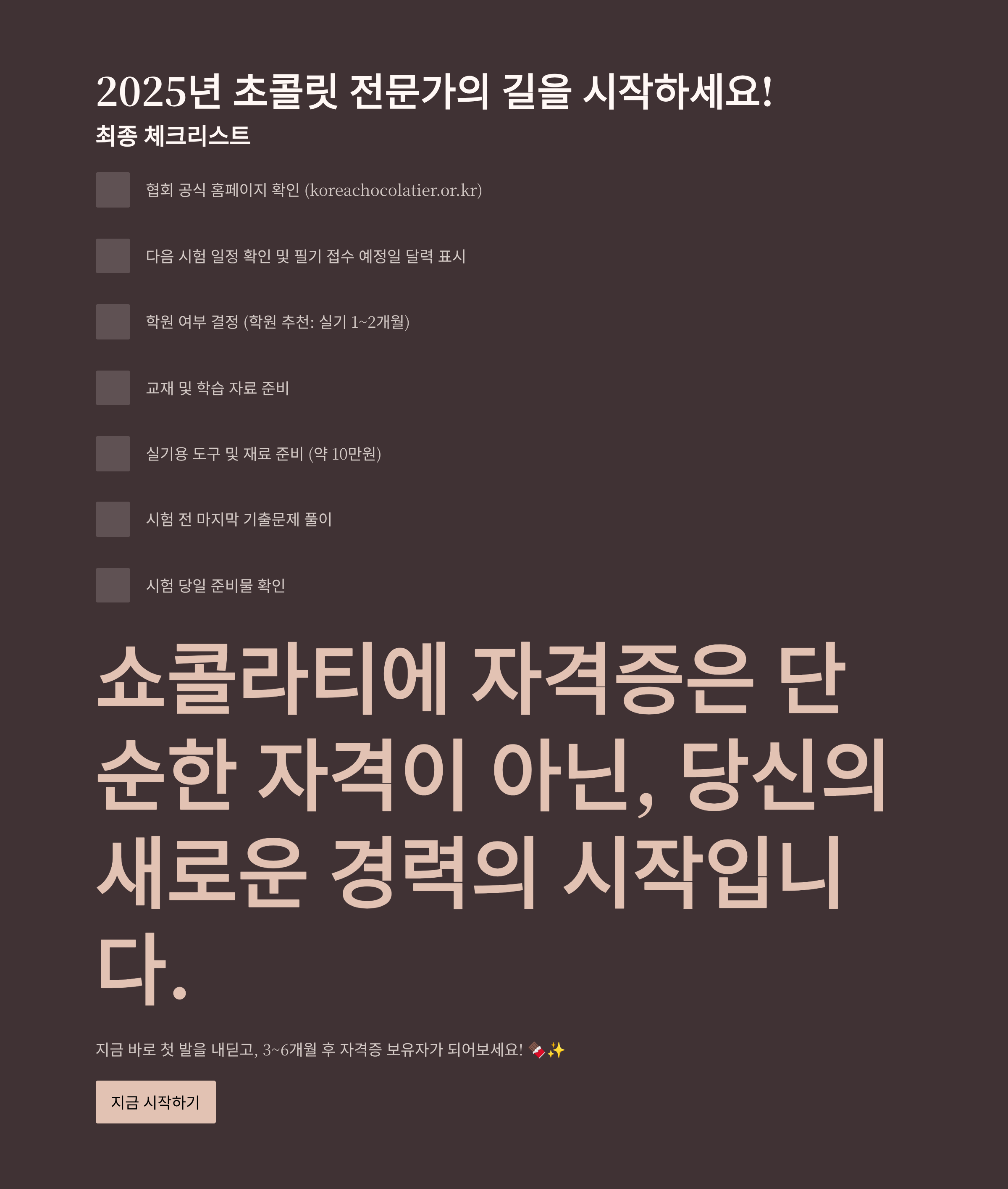 지금 바로 첫 발을 내딛고, 3~6개월 후 자격증 보유자가 되어보세요! 🍫✨