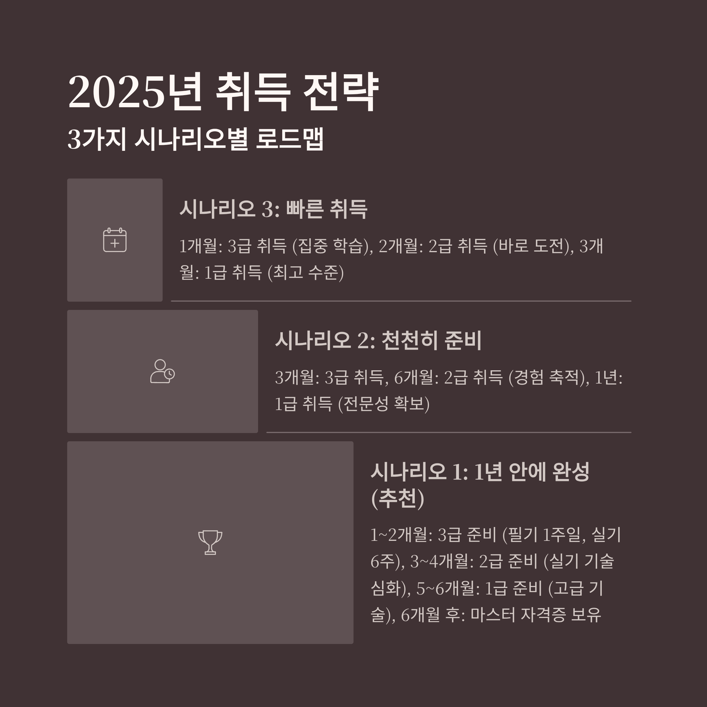 - 1개월: 3급 취득 (집중 학습)