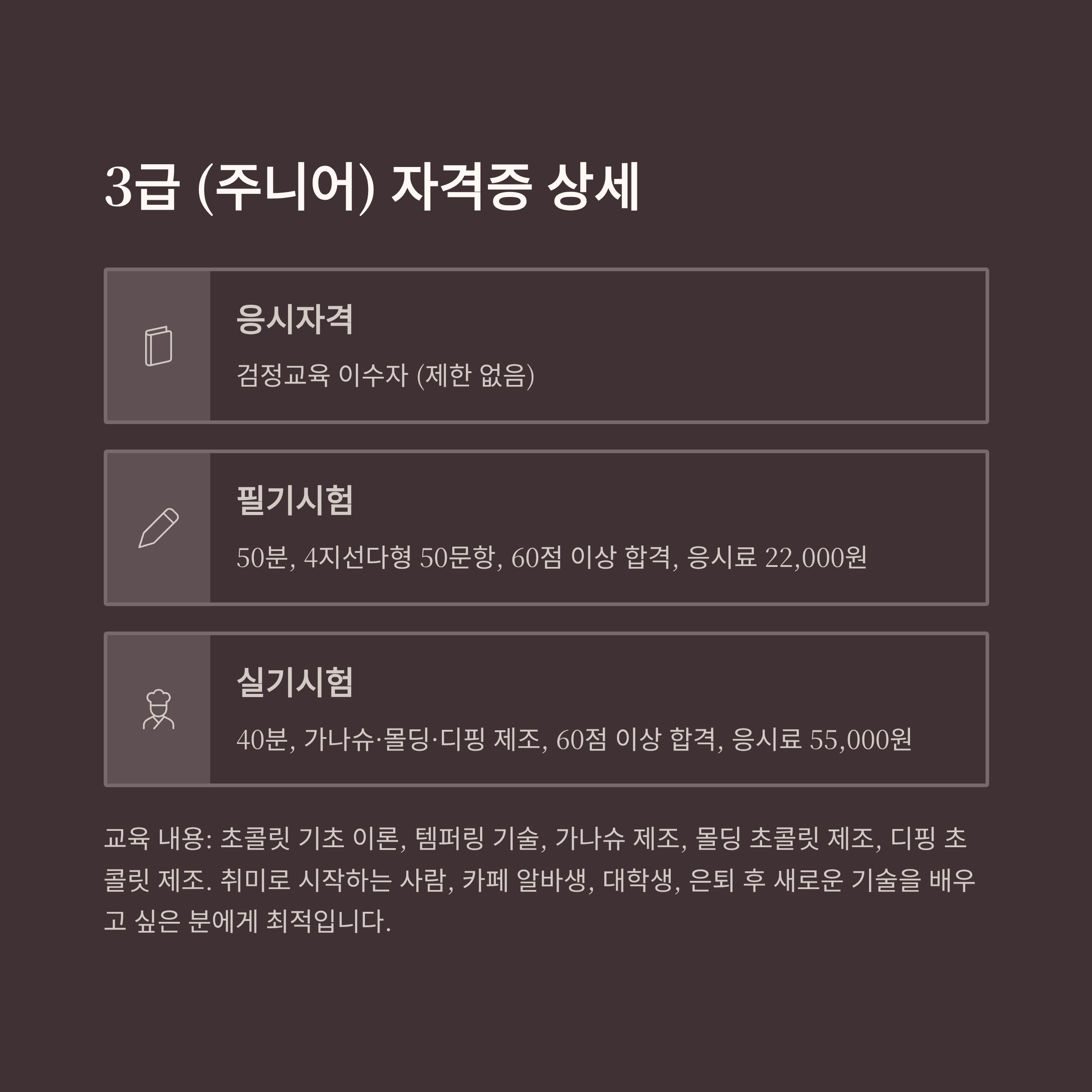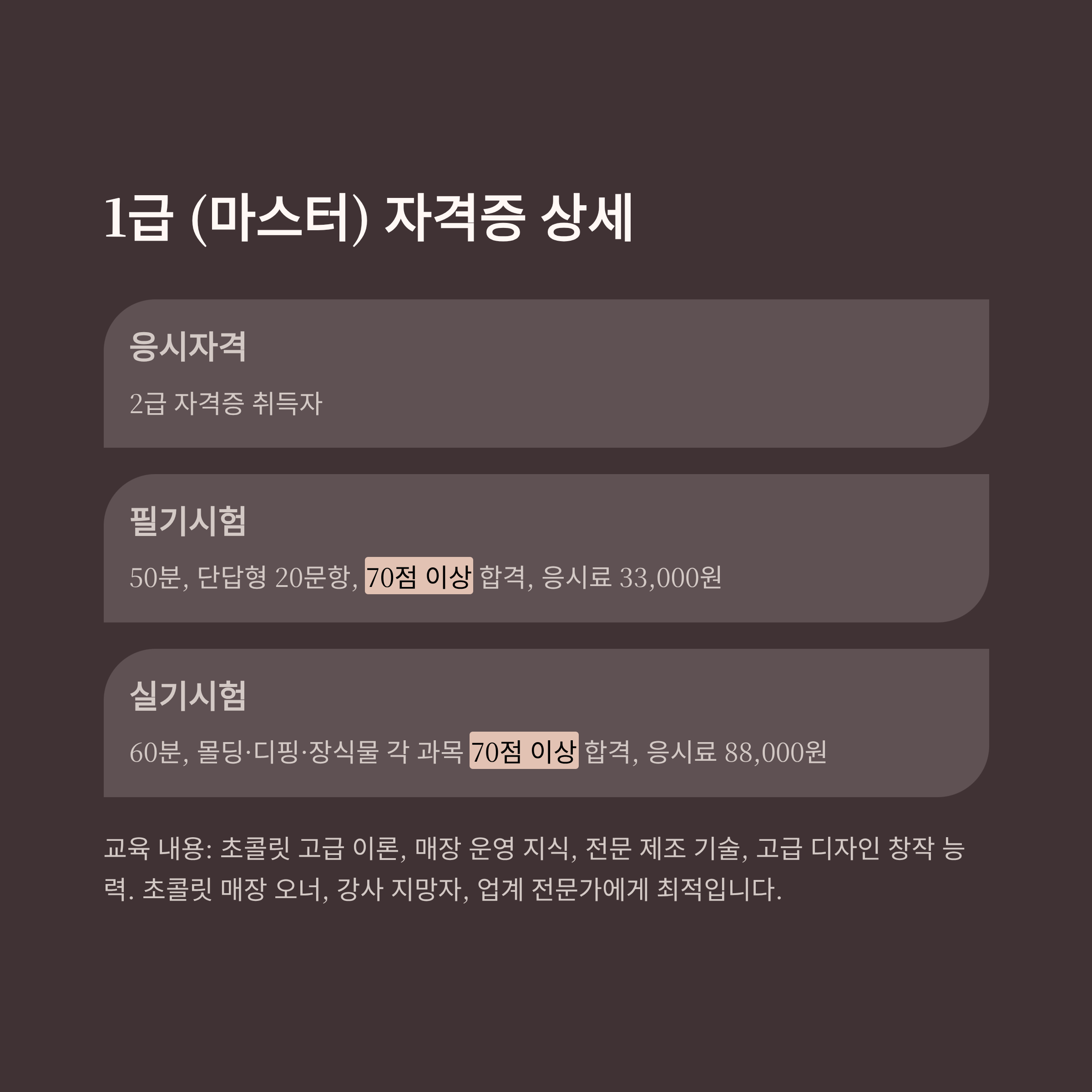 📚 쇼콜라티에 자격증의 종류 (3가지 등급)