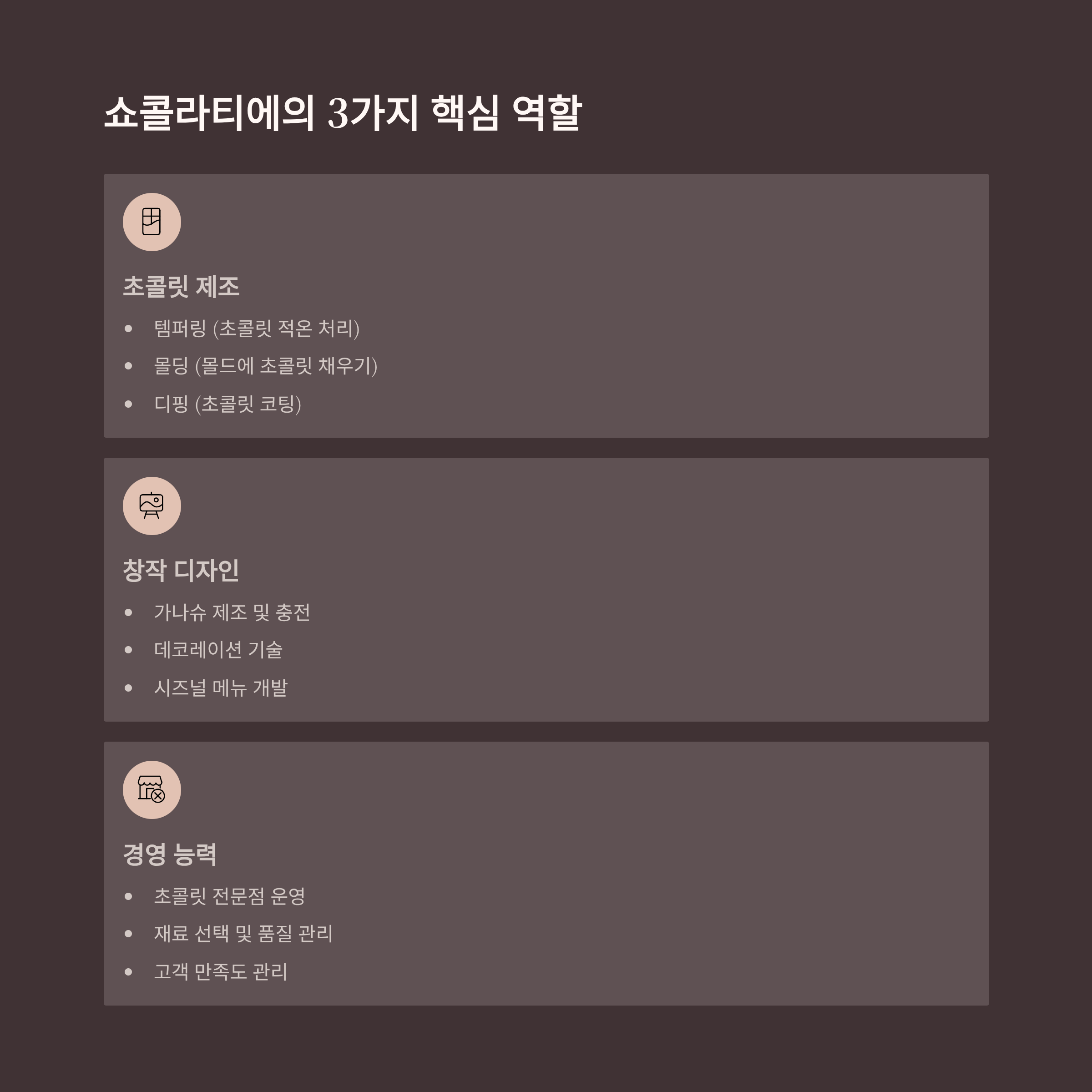 - 초콜릿 전문점 운영