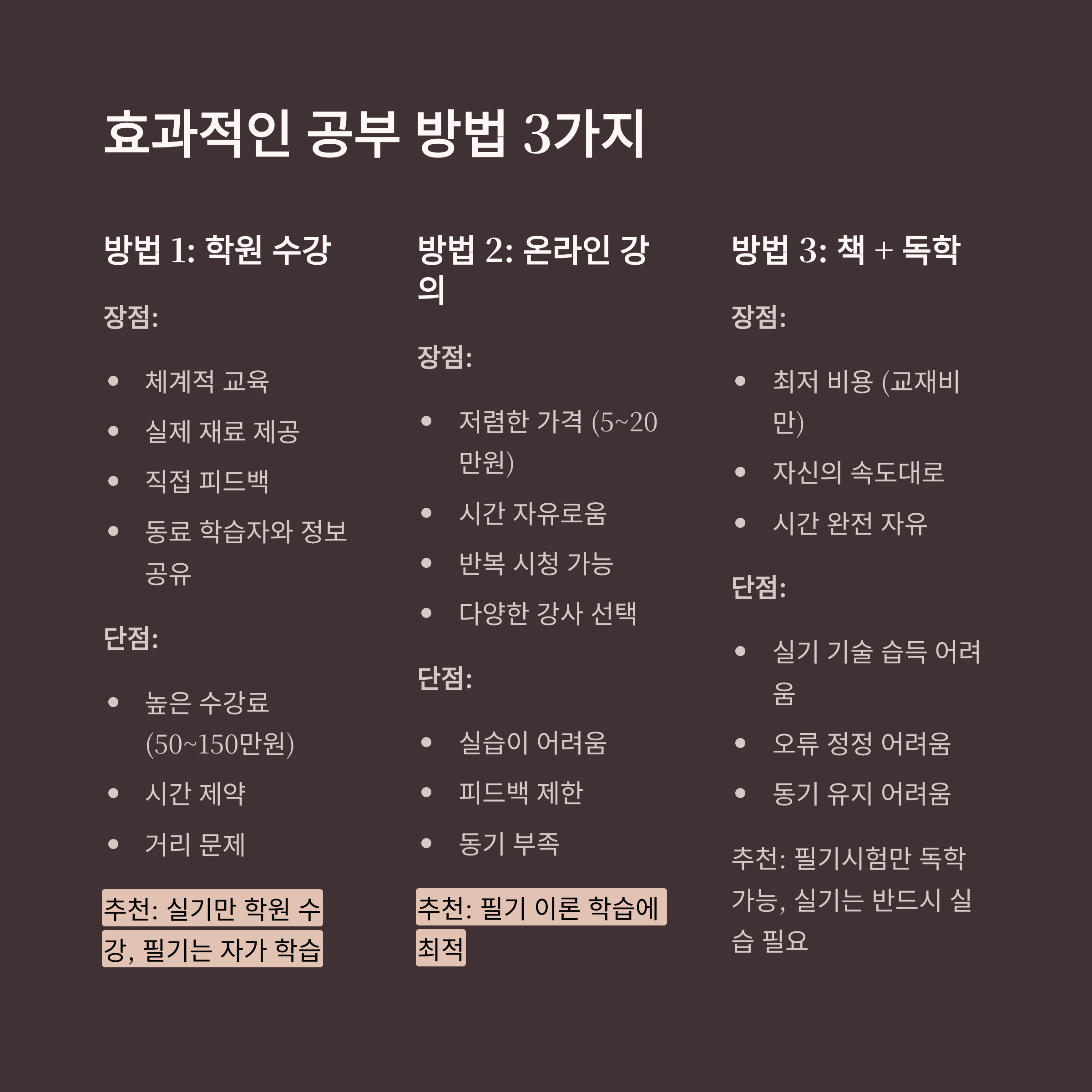 추천: 필기시험만 독학 가능, 실기는 반드시 실습 필요