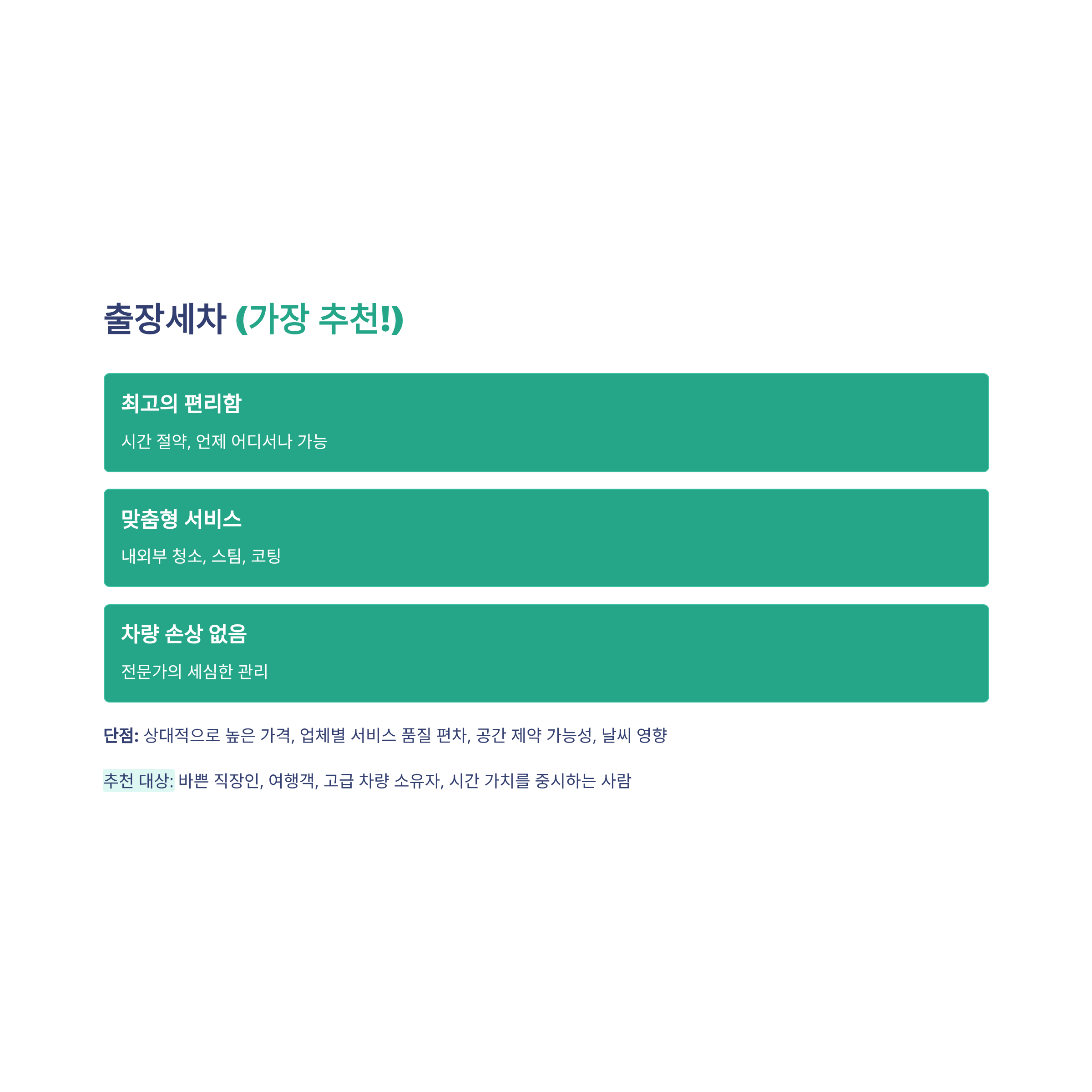 추천 대상: 바쁜 직장인, 여행객, 고급 차량 소유자, 시간 가치를 중시하는 사람