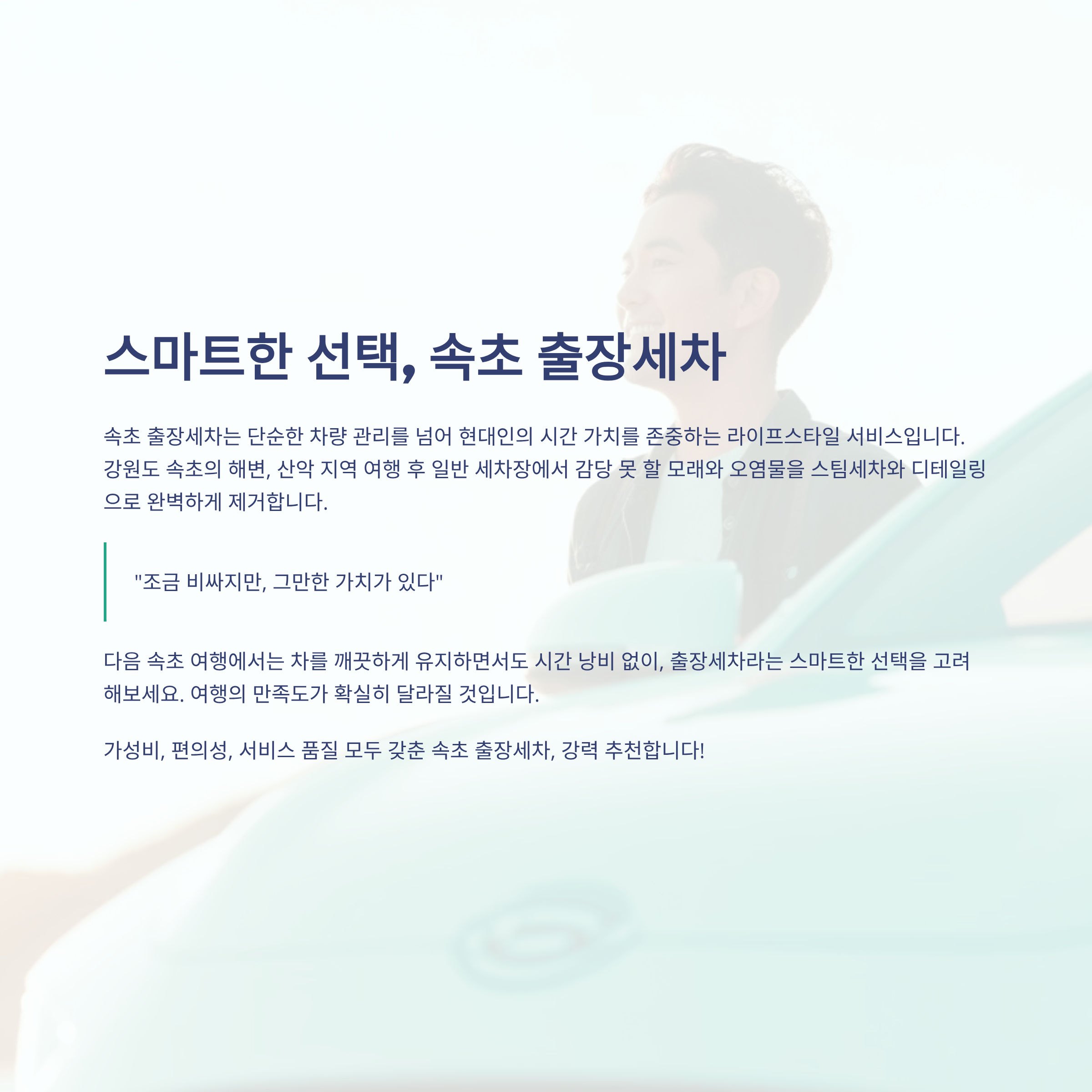 속초 출장세차 | 바쁜 여행객과 직장인을 위한 스팀세차·내외부 클리닝 완벽 가이드 | 가격부터 후기까지 한 번에!