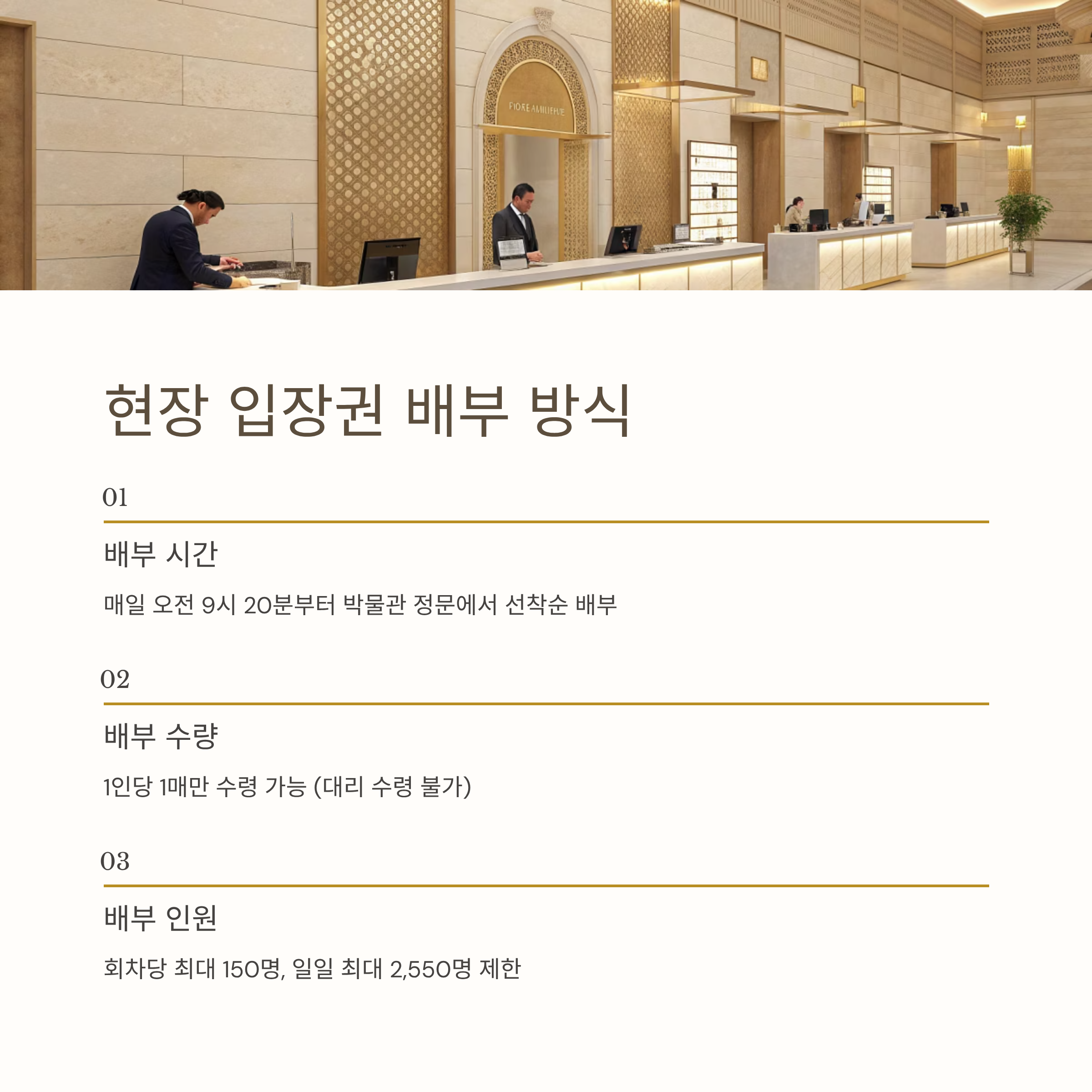 - 배부 시간: 매일 오전 9시 20분부터 박물관 정문에서 선착순 배부