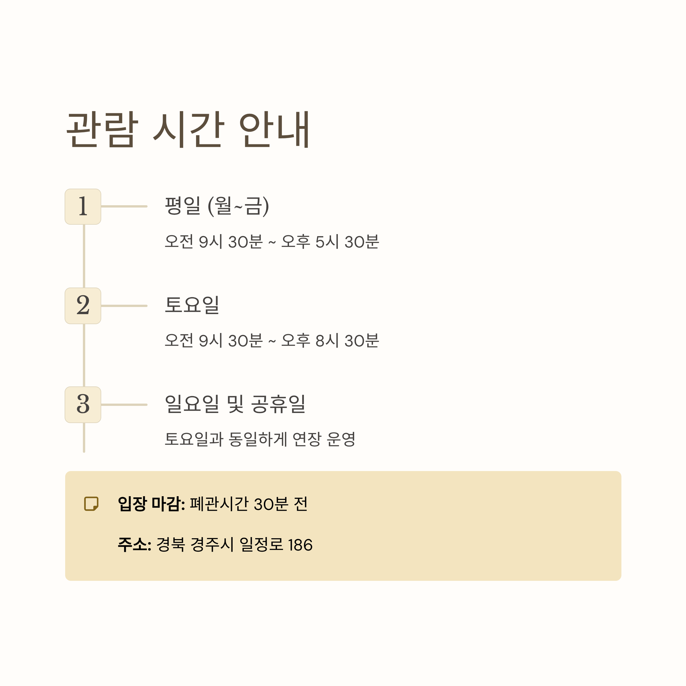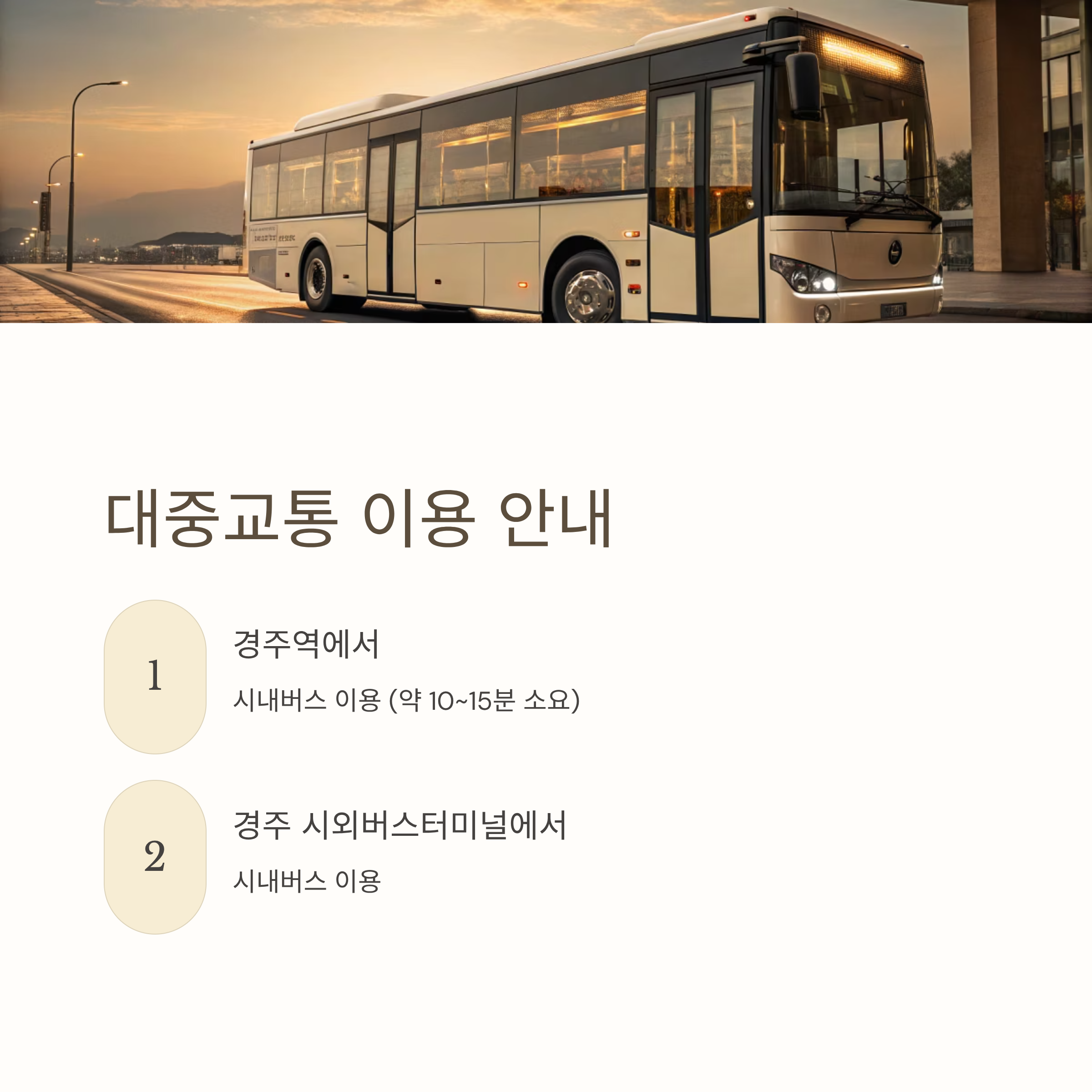 - 경주역에서 시내버스 이용 (약 10~15분 소요)