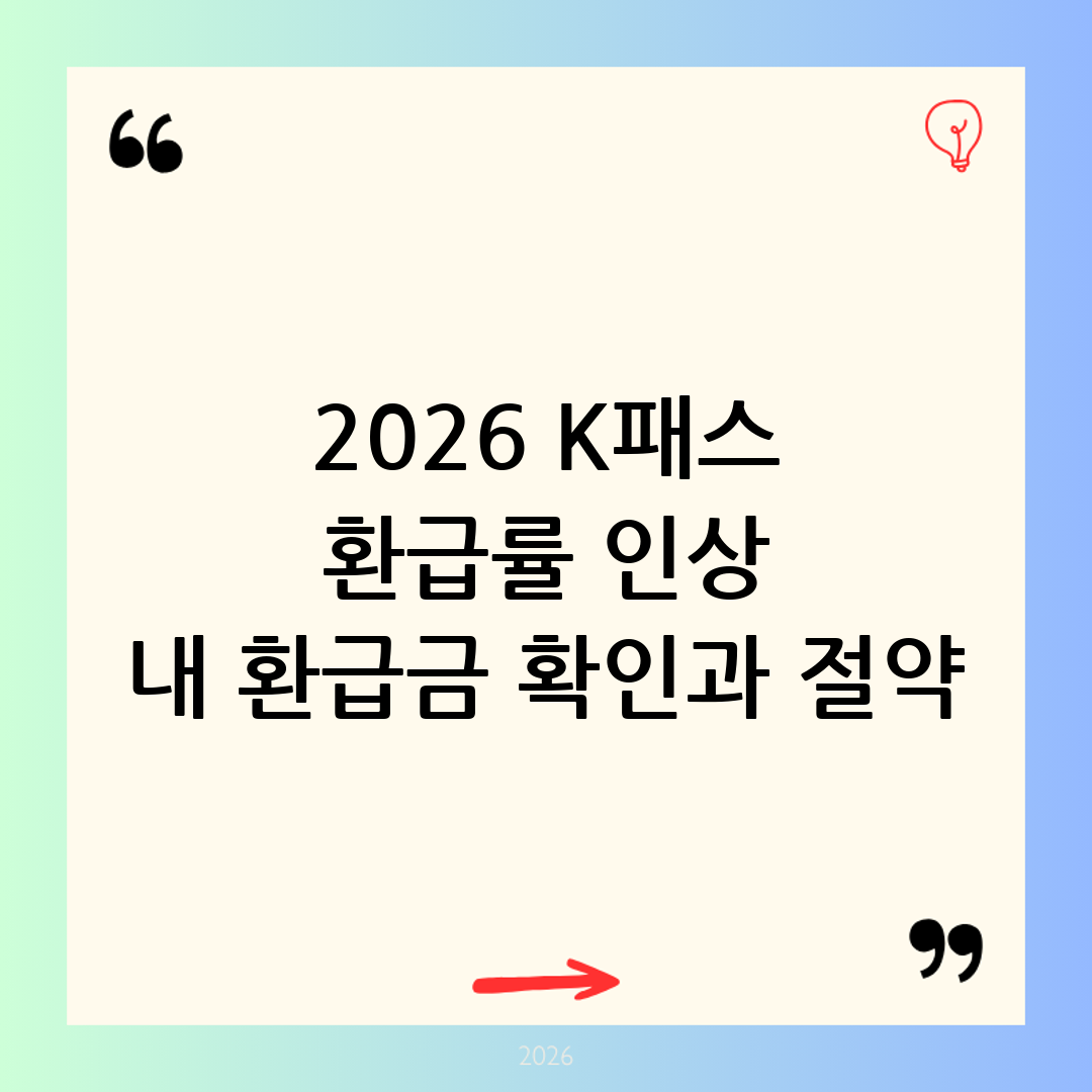 매일 출퇴근이나 통학을 위해 대중교통을 이용하시는 분들이라면 매달 고정적으로 지출되는 교통비가 큰 부담으로 다가오실 것입니다. 정부는 이러한 국민들의 교통비 부담을 덜어주기 위해 K패스 제도를 운영하고 있으며, 다가오는 2026년을 맞이하여 더욱 파격적인 혜택을 담은 개편안을 준비하고 있습니다. 특히 이번 개편의 핵심은 바로 2026 K패스 환급률 인상입니다. 기존보다 훨씬 높은 비율로 돌려받을 수 있게 되어 많은 분들의 관심이 집중되고 있습니다. 오늘 포스팅에서는 2026 K패스 환급률 인상 대상 확인부터 정확한 환급금 계산 방법, 그리고 이를 활용한 극강의 교통비 절약방법 한눈에 정리까지 완벽하게 파헤쳐 보겠습니다. 대중교통을 이용하는 분들이라면 단 한 푼도 놓치지 않도록 끝까지 정독해 주시기 바랍니다.