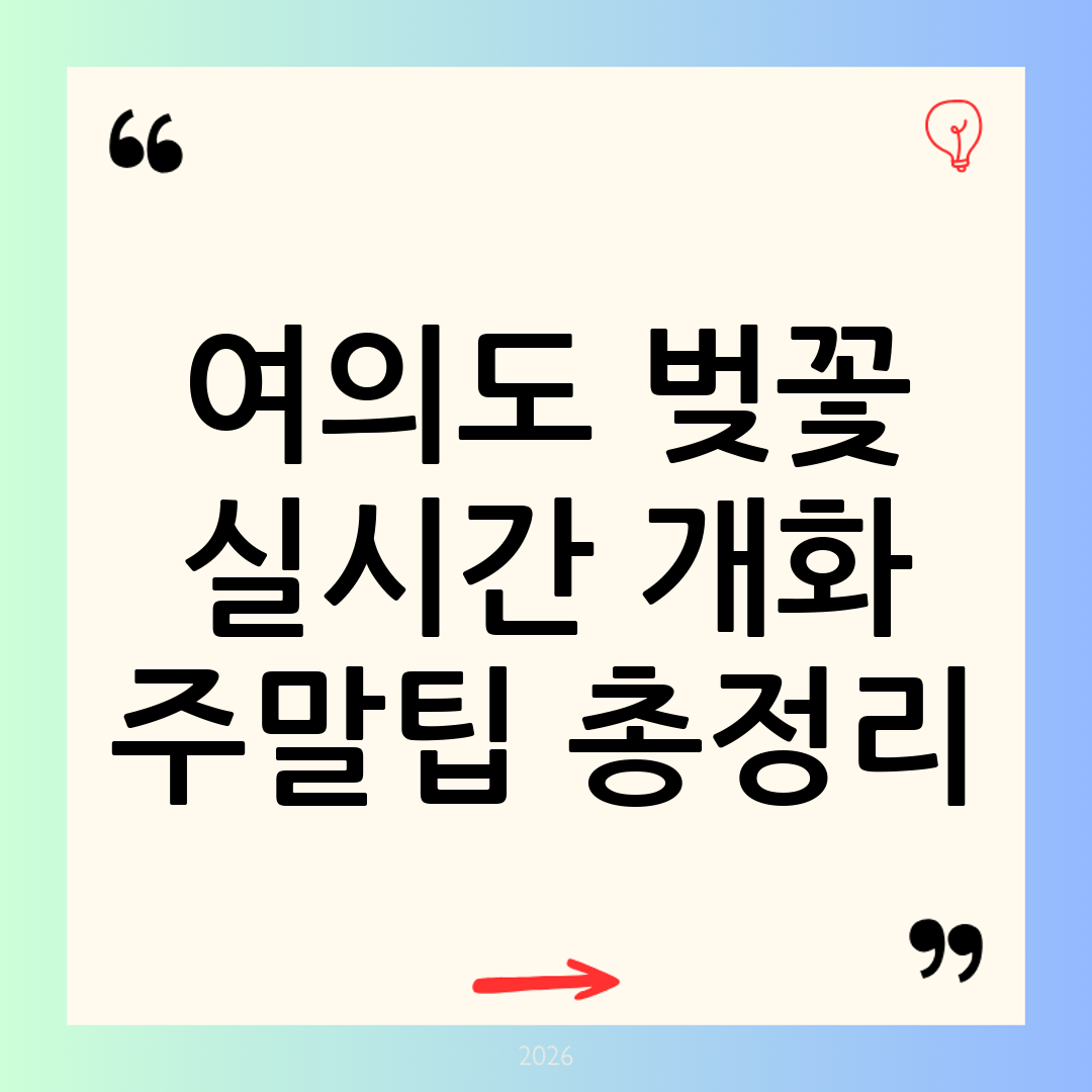 여의도 벚꽃은 매년 아름답지만, 주말엔 변수도 많습니다. 그래서 2026 여의도 봄꽃축제 벚꽃개화 상황을 ‘실시간 체크포인트’로 확인하고, 혼잡을 피하는 시간대와 짧은 동선을 선택하는 것이 가장 확실한 성공 전략입니다.