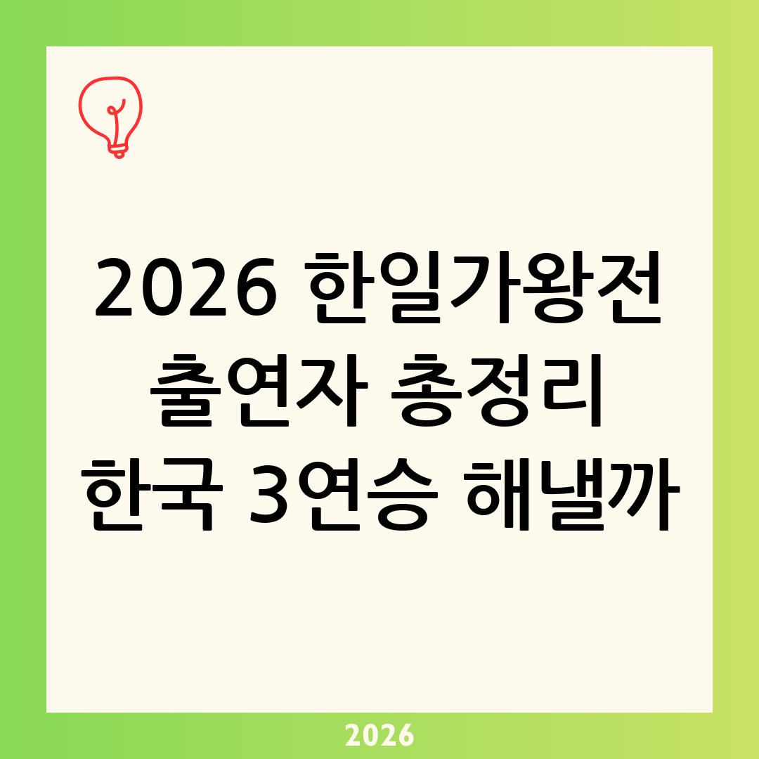 하지만 승부의 세계는 언제나 냉혹하며, 일본 대표팀 역시 이번만큼은 결코 물러설 수 없다는 비장한 각오로 철저한 준비를 마쳤습니다. 과연 대한민국 국가대표팀은 일본의 거센 반격을 막아내고 3연승이라는 전무후무한 대기록을 달성할 수 있을까요? 이번 포스팅에서는 2026 한일가왕전 출연자 총정리와 함께, 한국의 3연승 가능성에 대해 다각도로 심도 있게 분석해 보겠습니다.