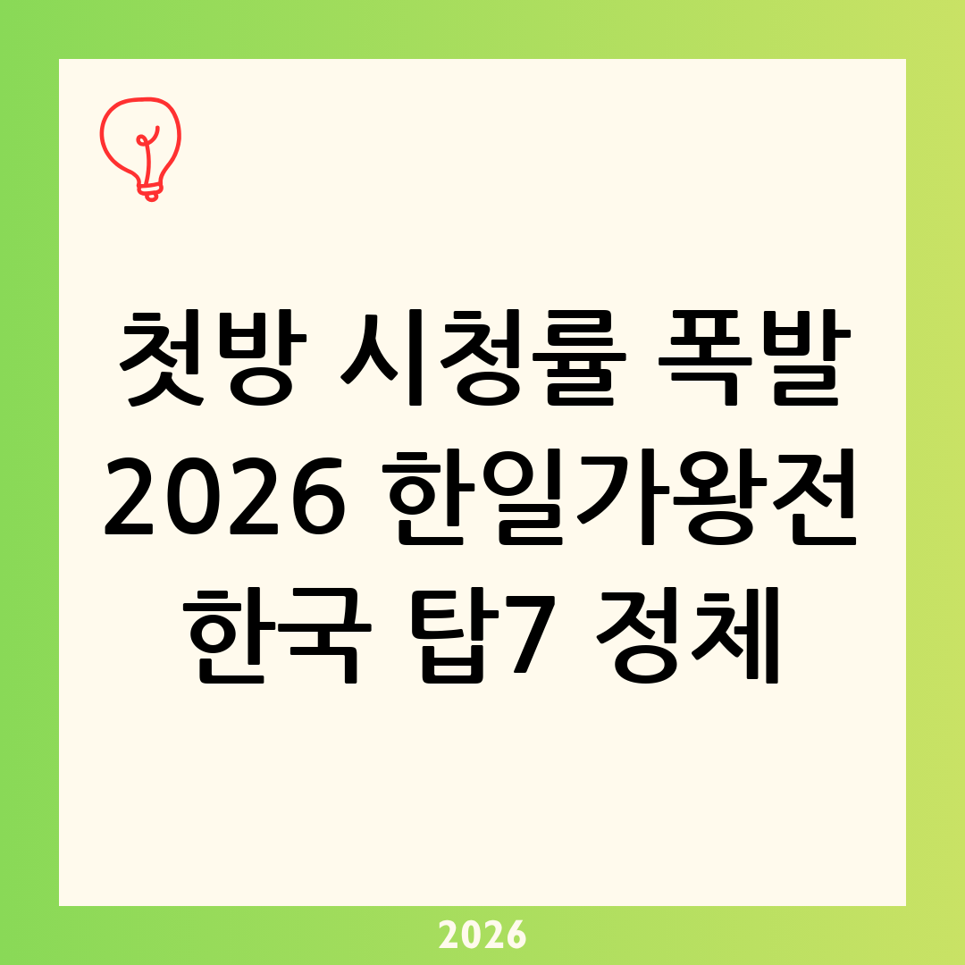 최근 방송계와 음악계의 가장 뜨거운 감자는 단연코 '2026 한일가왕전'입니다. 방송 전부터 수많은 화제를 낳았던 이 프로그램은 첫 방송부터 무려 전국 시청률 5.6%를 기록하며 쾌조의 스타트를 끊었습니다. 요즘 같은 다매체 시대, 특히 OTT 플랫폼이 시장을 장악하고 있는 현 상황에서 TV 본방송 첫 시청률 5.6%라는 수치는 그야말로 경이로운 기록이 아닐 수 없습니다. 그렇다면 과연 무엇이 이토록 시청자들을 TV 앞으로 끌어모았을까요? 그 중심에는 바로 대중의 압도적인 지지를 받으며 선발된 2026 한일가왕전 한국 TOP7 명단이 있습니다. 이번 포스팅에서는 첫 방송이 대박 날 수밖에 없었던 이유와 함께, 대한민국을 대표하여 무대에 오르는 자랑스러운 TOP7의 면면을 아주 상세하게 분석해 보겠습니다.